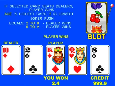 После каждого удачного спина клиенту предоставляется возможность удвоить размер выигрыша. Цель игрока – выбрать одну из закрытых карт, номинал которой окажется выше, нежели карта дилера. Если выбор окажется верным, то размер выигрыша автоматически удваивается, а средства зачисляются на игровой баланс клиента казино. Видео слот, как и другие подобные автоматы, оснащен игрой на удвоение. Запускается она в главной игре, когда участник выигрывает. Нужно лишь открыть ту игральную карту, которая будет считаться старшей, чем игральная карта у дилера.