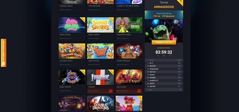 Выиграть в онлайн казино может каждый зарегистрированный игрок заведения. Игровой клуб позаботился о своих игроках, поэтому на сайте предоставлено богатейшее разнообразие популярных игр. Самые популярные среди игроков это слоты, рулетка, гонзо, нила, легенды, фрэнк, занос. Вы можете протестировать игры которые вам понравились бесплатно в режиме демо, а после регистрации начать играть на реальные деньги.